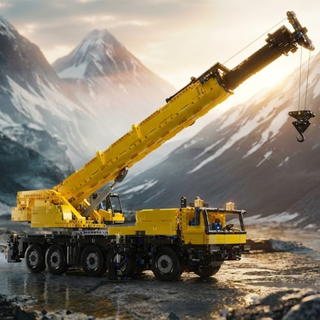 Jeśli posiadasz już Liebherr LTM 11200 Ultimate Crane (8 506 elementów) lub Truck-Mounted Crane (2 530 elementów), ten LTM 1110 wypełnia idealny punkt pośredni. Mniej kolosalny niż 11200, a jednocześnie znacznie bardziej zaawansowany niż modele podstawowe, tworzy logiczną progresję skali i złożoności dla kolekcjonerów budujących kompletne floty maszyn budowlanych.