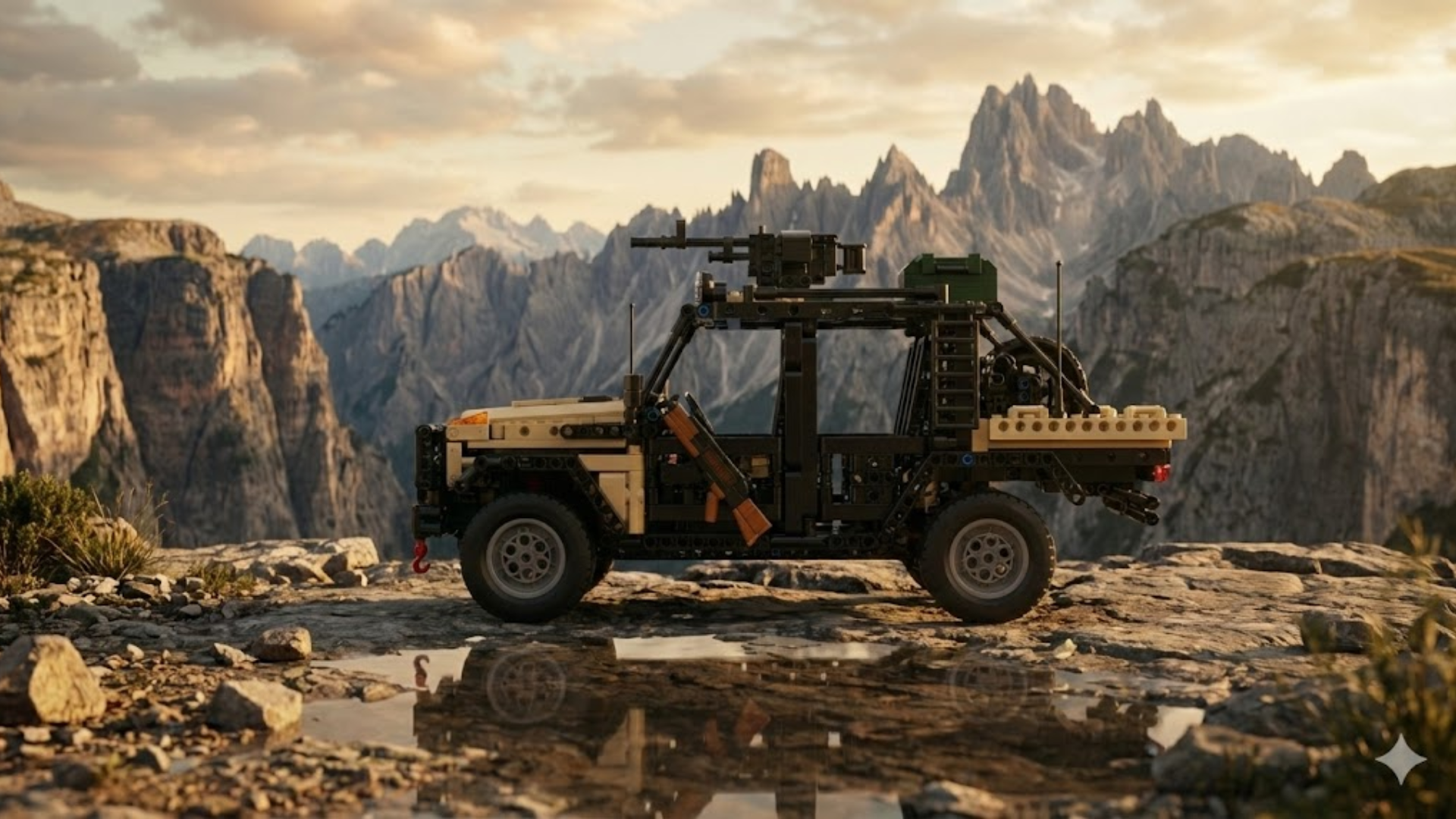 Dzięki 1 577 elementom, ten model wiernie odwzorowuje nowoczesne pojazdy taktyczne desantu powietrznego. Łączy solidność pojazdu opancerzonego z prędkością rajdowego jeepa.