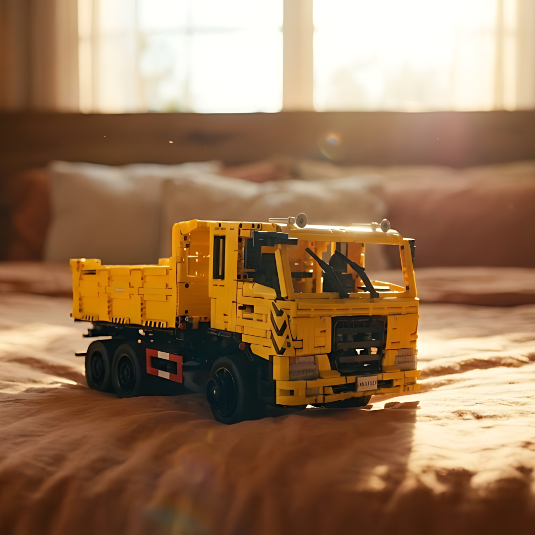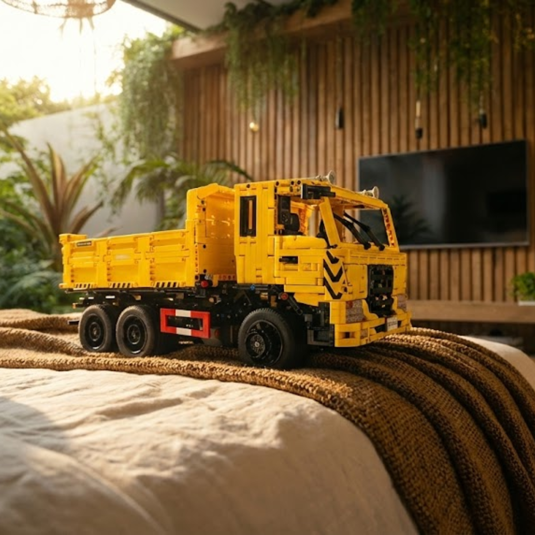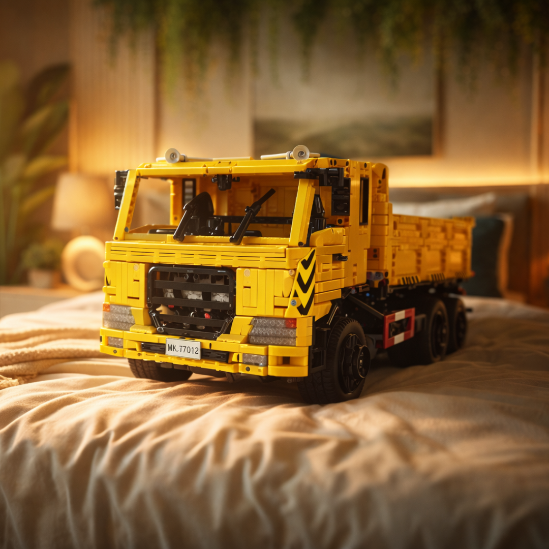 Dzięki 3 206 elementom ten imponujący żółty gigant odwzorowuje złożoność ciężkich pojazdów transportowych, które kształtują nowoczesną infrastrukturę.