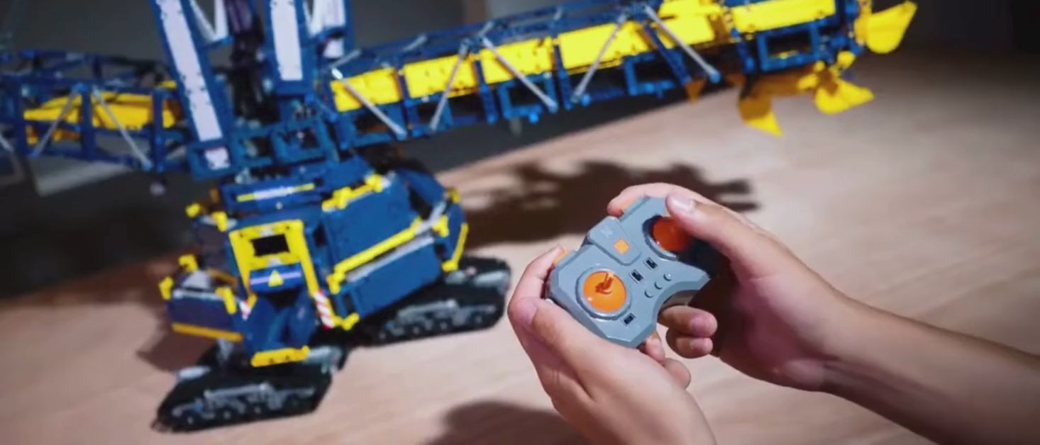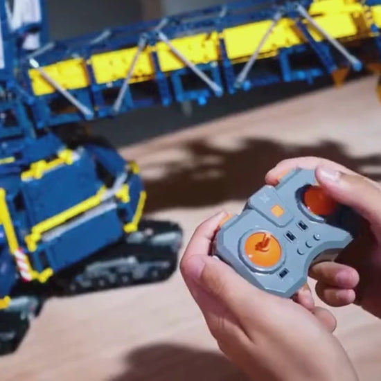 This buildable miniature features moving crawler tracks, a rotating superstructure, an articulated arm and a massive bucket wheel powered by high-torque XL and L motors, all powered by a smart battery that can be controlled either by a 2.4 GHz remote control or by a mobile app.