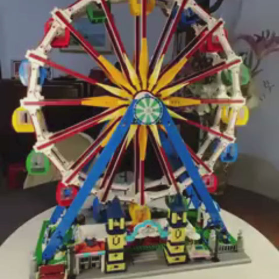 With an impressive 3,836 pieces, this model recreates the grandeur of a classic amusement park Ferris wheel, complete with colorful cabins, a detailed ticket booth, and ice cream carts at the base.