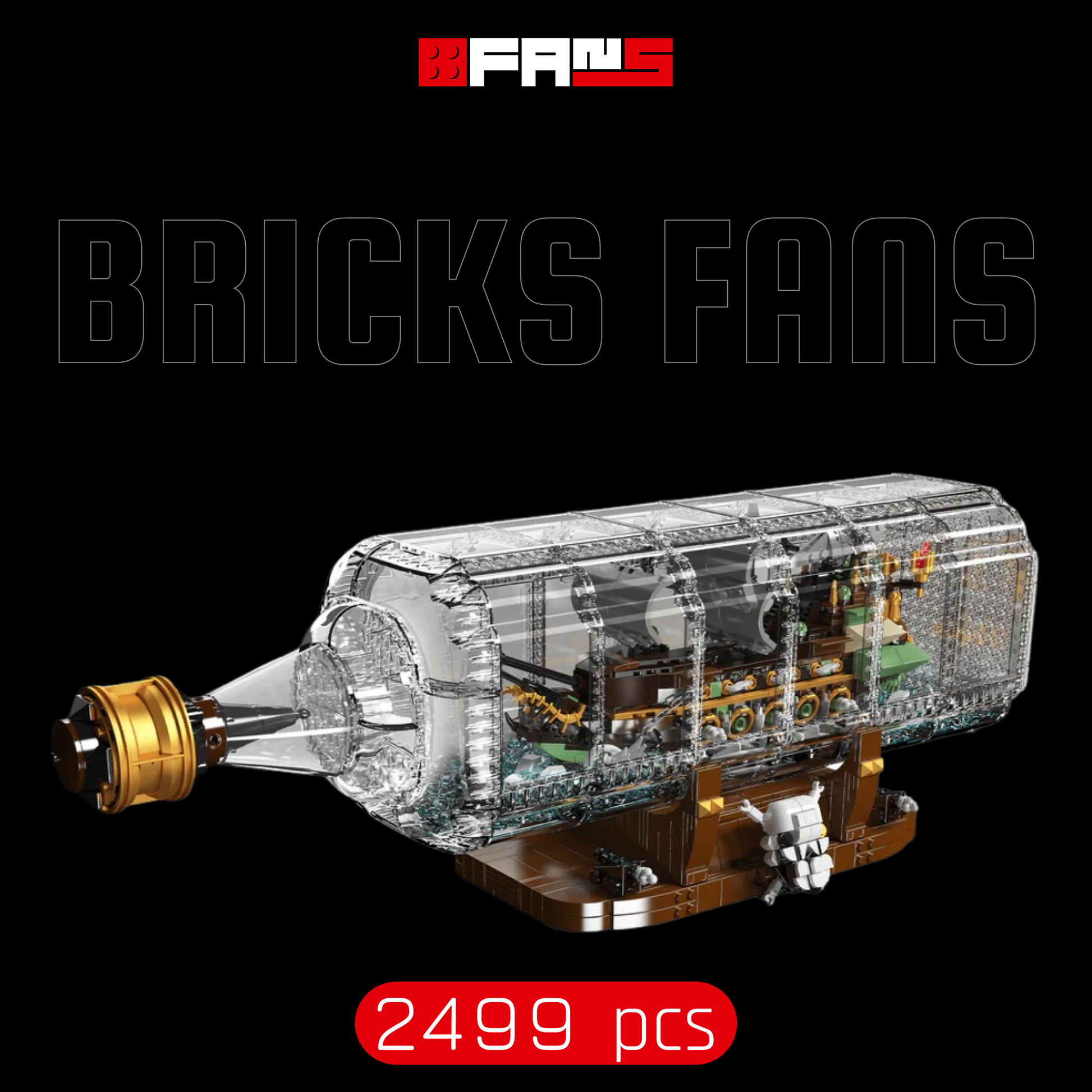With 2,499 pieces, this model delivers a deep, immersive and completely engaging building experience, allowing you to explore every part of the legendary cursed ship as you watch it emerge inside a crystal-clear bottle.