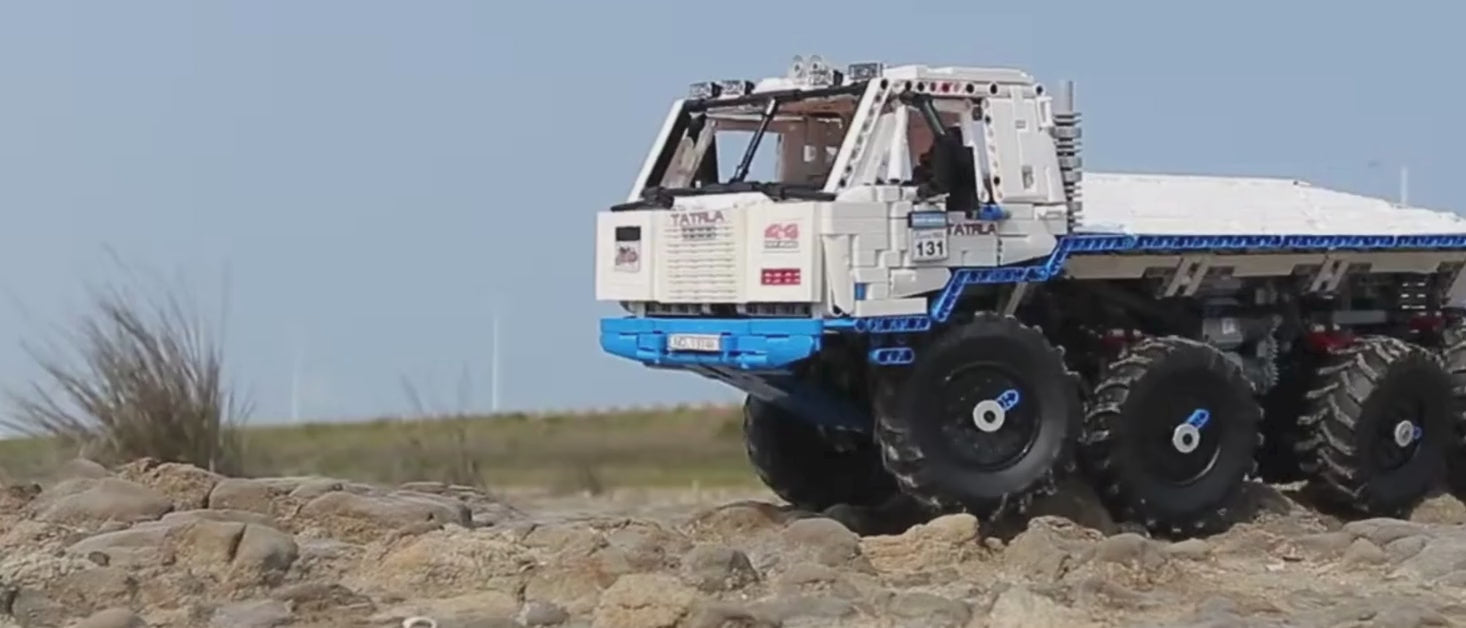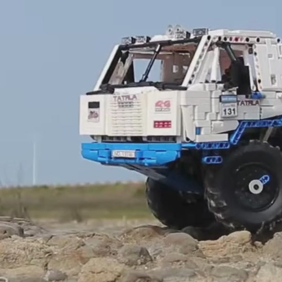 In 1:14 scale, with powerful motors, full traction, and multidirectional steering, this buildable model with almost 4,000 pieces was designed and inspired by the Tatra T813, produced by the Czech manufacturer Tatra between 1967 and 1982, created especially for extremely demanding applications, both civilian and military.