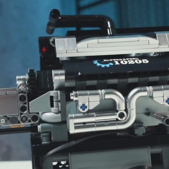 It is a machine built to deliver raw horsepower. The open structure ("Skeleton Design") allows you to visualize every stage of the power cycle, from the rotation of the crankshaft to the simulated pressurization of air.