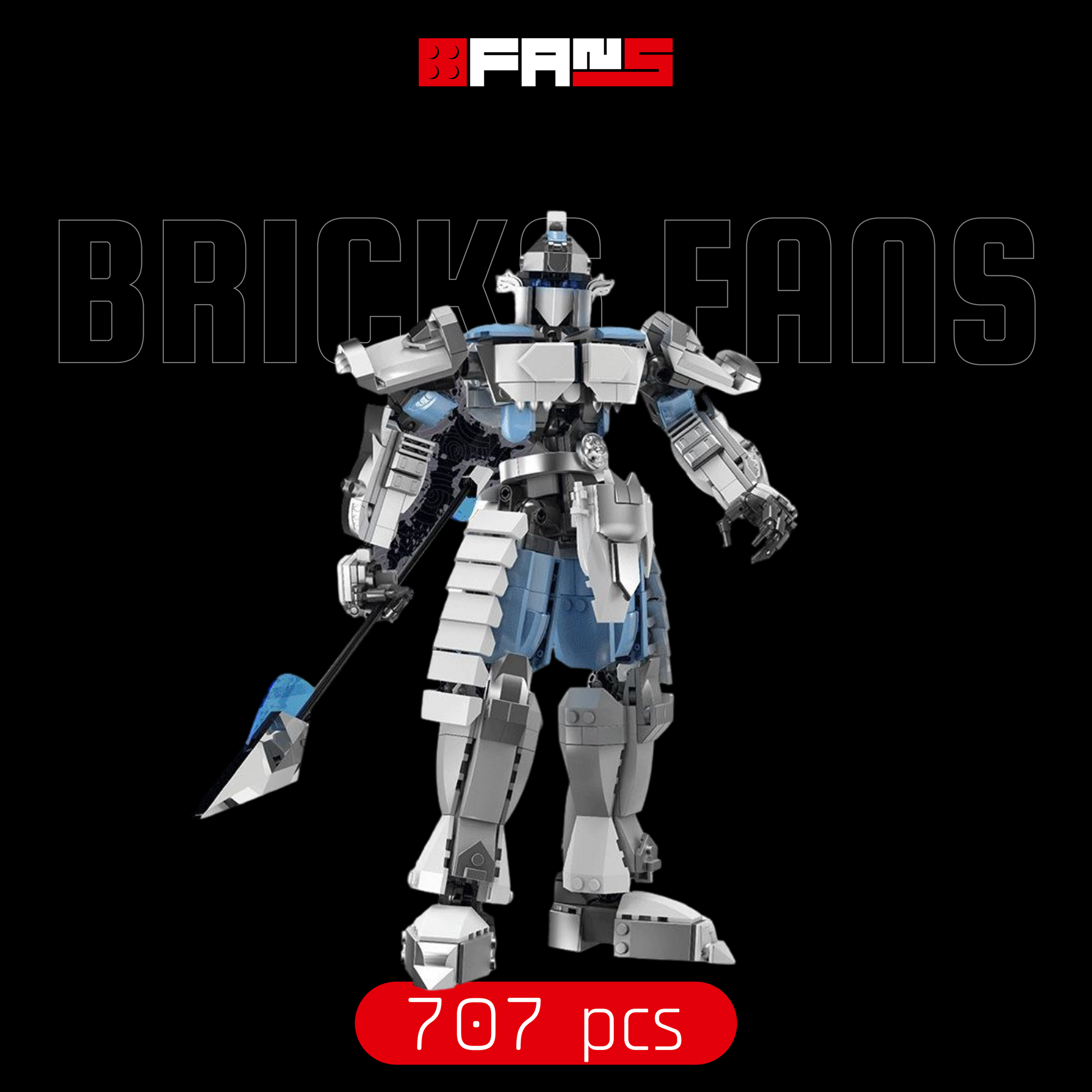 With 707 pieces, it combines sharp lines, mystical cerulean coloration, and aggressive proportions, creating a mecha that seems to advance even while standing still.