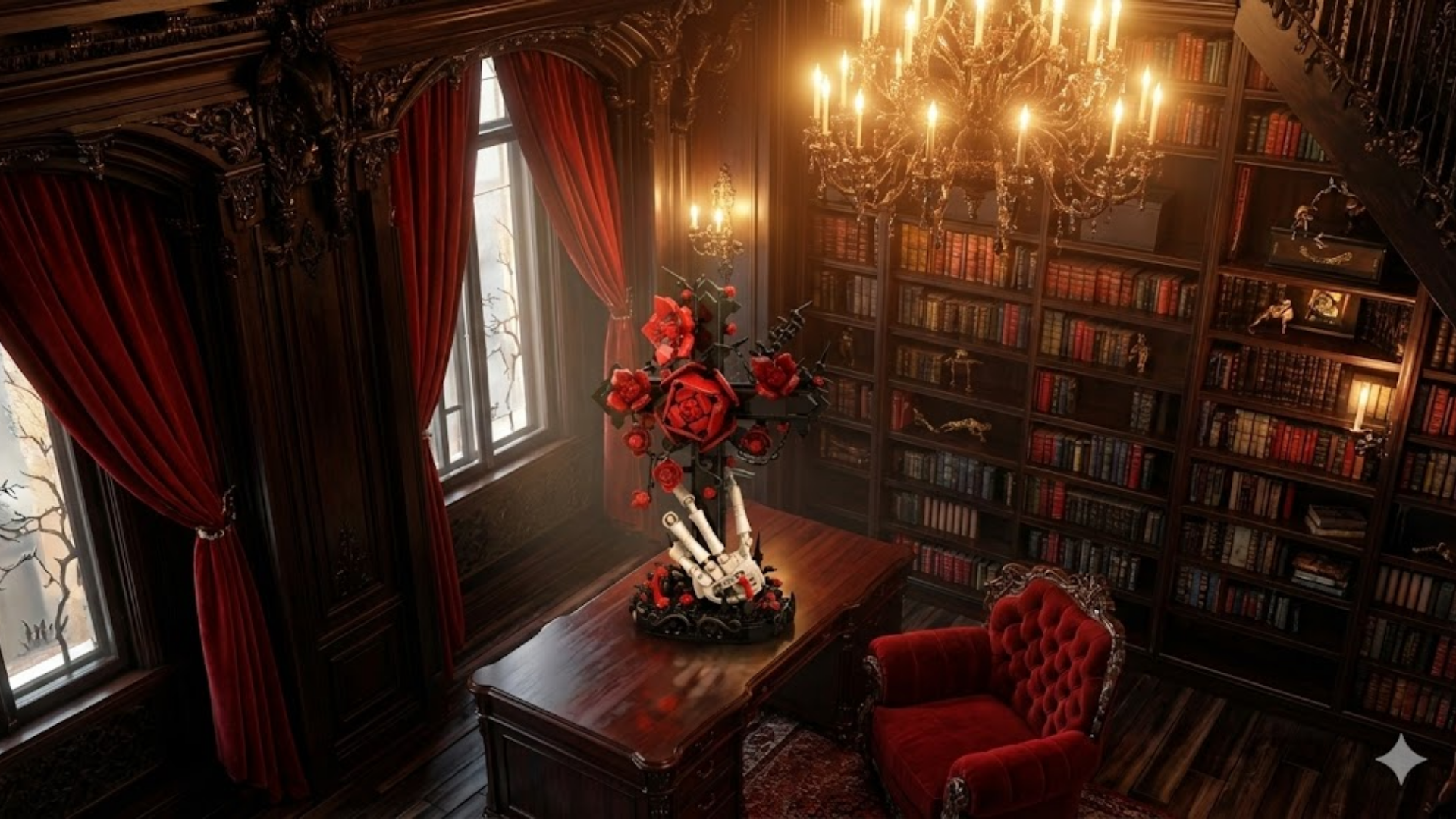 Não é apenas um kit de construção; é um monumento em miniatura inspirado na literatura clássica de terror, no simbolismo Memento Mori e na arte sacra sombria.